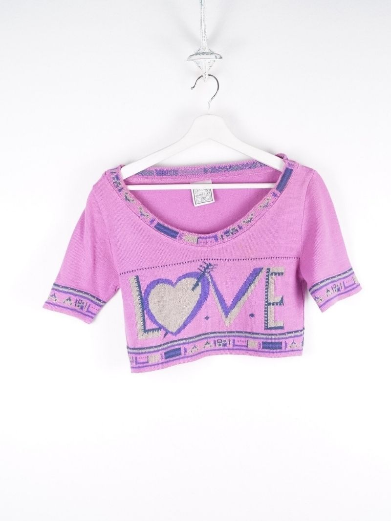Llueix a la moda amb aquesta increïble samarreta de punt Ananá Fizz! Aquest top curt de color rosa és perfecte per a destacar en qualsevol ocasió. Amb la paraula “love” estampada en el front, transmetràs un missatge d’amor i positivitat. El seu disseny modern et farà sentir còmoda i segura. No perdis l’oportunitat d’afegir aquesta peça única al teu armari!